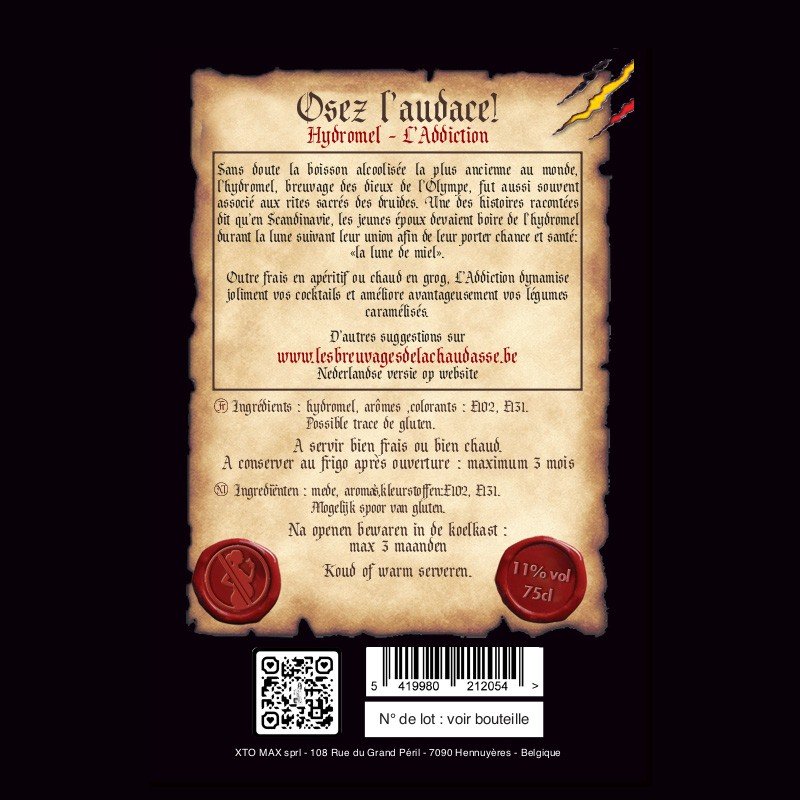 L’hydromel ADDICTION ne contient ni THC, ni CBD ou autre dérivé...Ses notes fleuries en font toutefois un breuvage des plus agréables !
