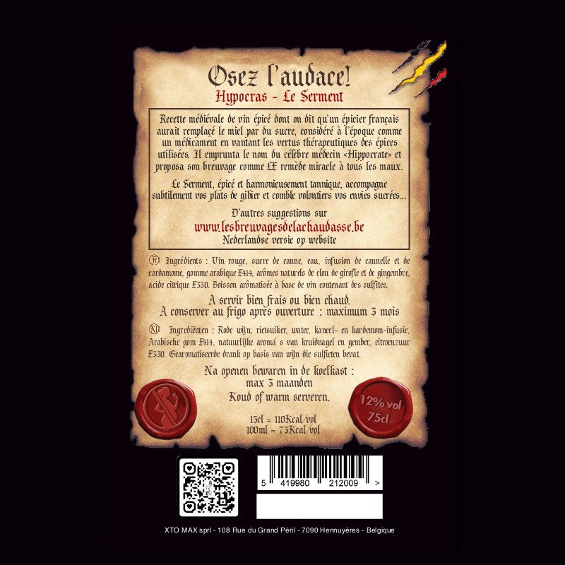 | Ingrédients | Vin rouge (conservateurs: sulfites), sucre de canne, eau, infusions de cannelle et de cardamome, alcool, arômes naturels de gingembre et de clou de girofle, stabilisant: gomme arabique, acidifiant: acide citrique. |