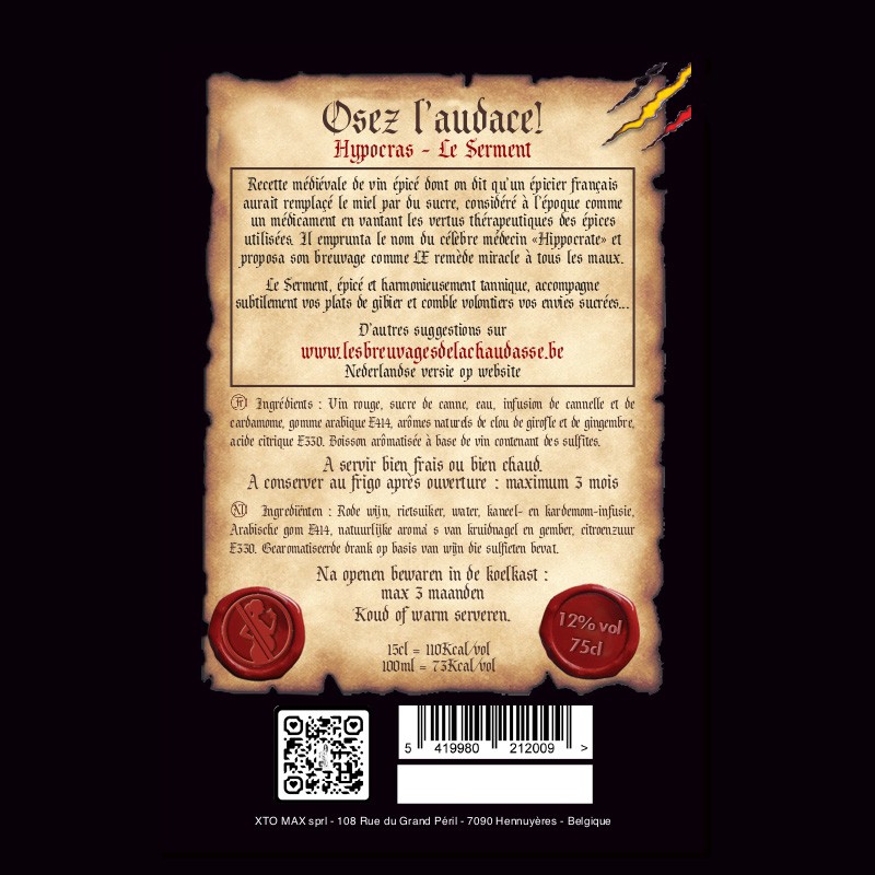 | Ingrediënten | Vin rouge (conservateurs: sulfites), sucre de canne, eau, infusions de cannelle et de cardamome, alcool, arômes naturels de gingembre et de clou de girofle, stabilisant: gomme arabique, acidifiant: acide citrique. |